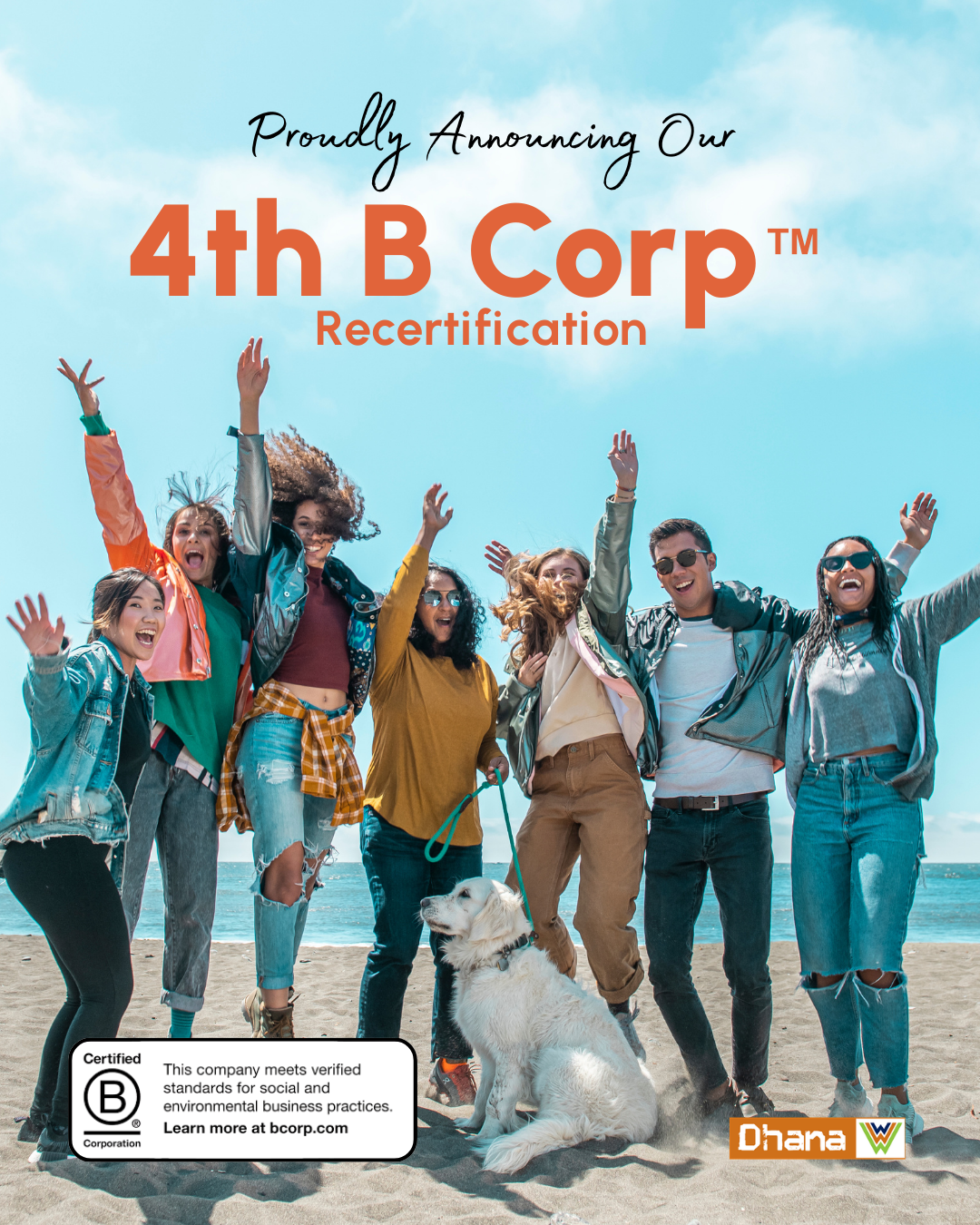 Dhana Inc. joins a global community of over 8,000 Certified B Corporations™ across more than 90 countries; all committed to redefining how business contributes to society.